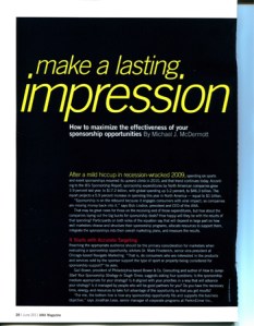 Make a Lasting Impression mjm Business May 7, 2012July 23, 2012 How to maximize the effectiveness of your sponsorship opportunities Ana Magazine June 2011 Share: Click to share on X (Opens in new window) X Click to share on Facebook (Opens in new window) Facebook Like Loading... Related Published May 7, 2012July 23, 2012