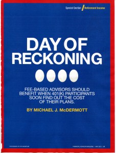 Day of Reckoning mjm Business July 23, 2012August 27, 2020 Fee-based advisors should benefit when 401(k) participants soon find out the cost of their plans Financial Advisor Magazine May 2012 Share: Click to share on X (Opens in new window) X Click to share on Facebook (Opens in new window) Facebook Like Loading... Related Published July 23, 2012August 27, 2020